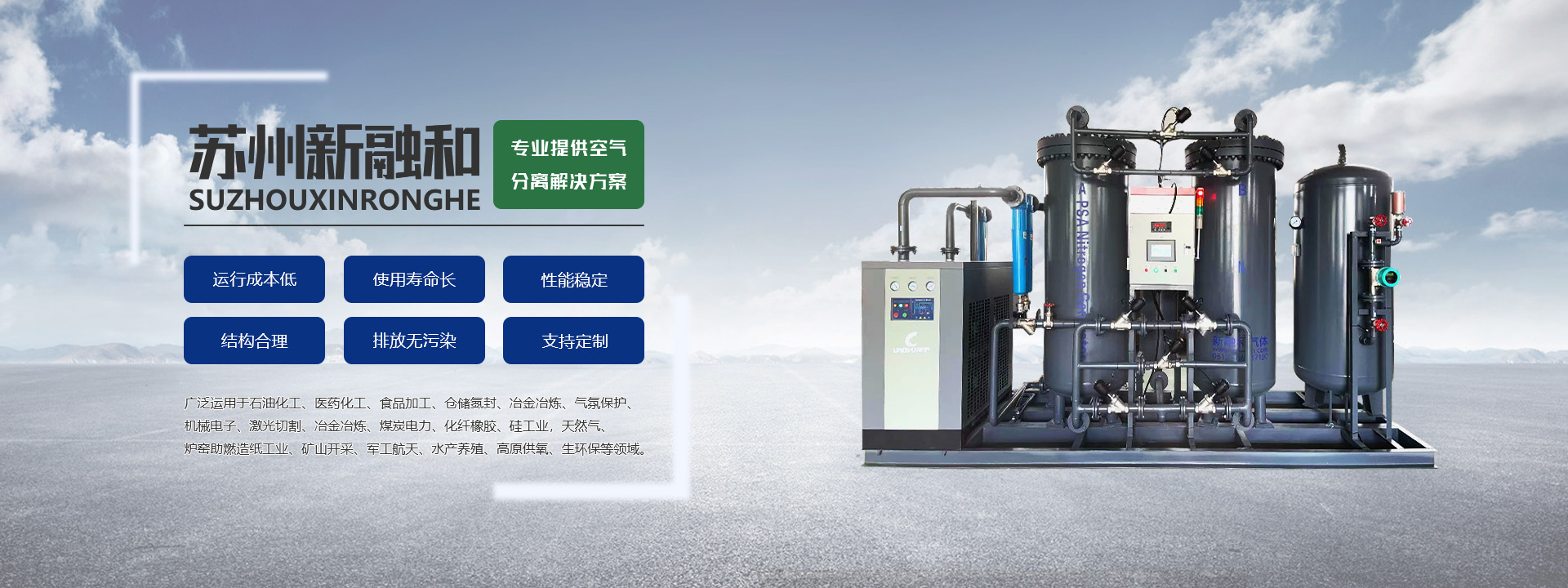 制氮機廠家蘇州新融和氣體設(shè)備有限公司為民營科技型股份制企業(yè),座落于風景秀麗的蘇州市相城區(qū),占地面積約6000㎡,擁有現(xiàn)代化的工業(yè)廠房3000㎡,商務(wù)智能化辦公場所1200㎡。